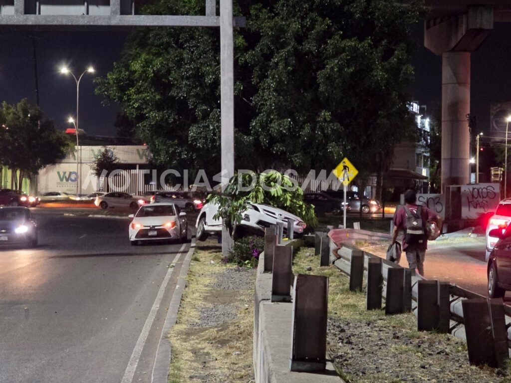 Un conductor salió del camino y terminó en el camellón de la incorporación de Constituyentes hacia la carretera de cuota a Celaya, luego de perder el control de su vehículo durante la noche de este viernes en Querétaro. De acuerdo con versiones en el lugar, el automovilista tomó la curva a exceso de velocidad, lo que provocó que saliera de la vialidad y derribara varios árboles antes de quedar detenido entre la barrera de contención y un poste de señalamiento.
