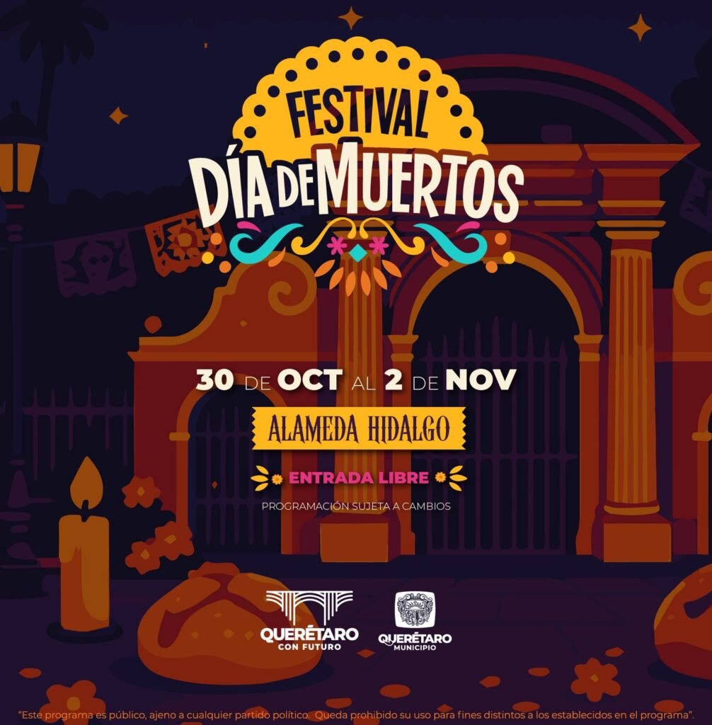 Durante cuatro días, se instalará una ofrenda monumental, talleres familiares, teatro, danza y música en vivo, con la participación de artistas queretanos. Los espacios públicos se llenarán de cempasúchil, papel picado y ambientación nocturna, reforzando el valor de una tradición que forma parte del patrimonio cultural del país.