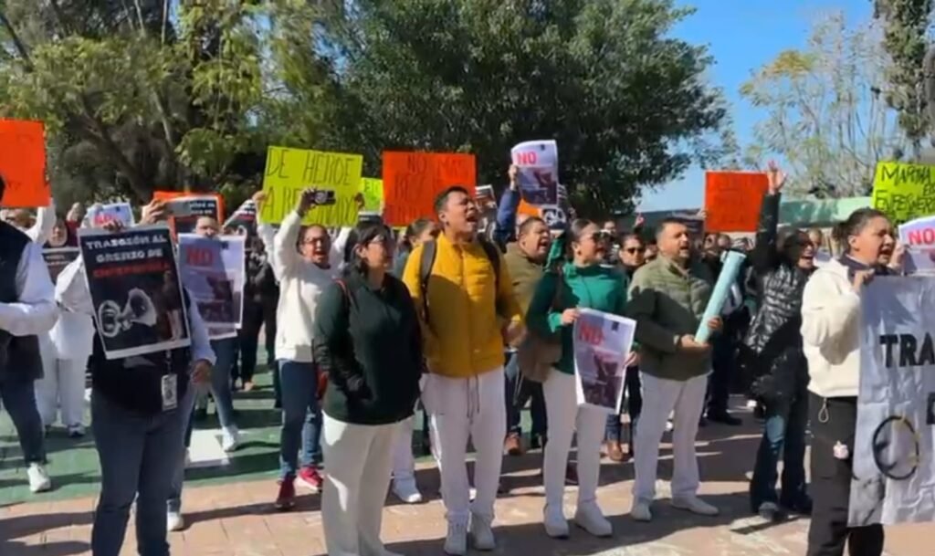 La movilización reunió a más de 100 trabajadores al interior de un hospital, donde también demandaron la salida de la delegada Martha Eloisa Sánchez Vázquez. Durante la protesta, los inconformes acusaron a las jefaturas de enfermería y de personal de no respetar los derechos laborales del personal médico.