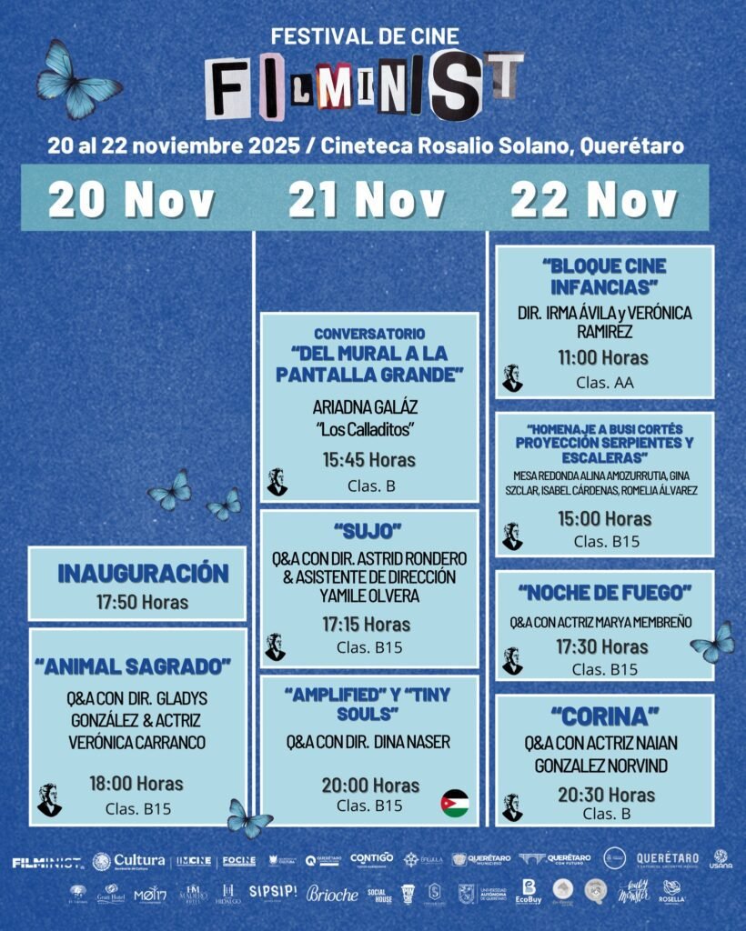 El programa de este año presenta una curaduría robusta con talento local, nacional e internacional. El festival arranca con la proyección de “Animal Sagrado”, de la directora queretana Gladys González. Además, se proyectarán cintas galardonadas y reconocidas como “Sujo” y “Noche de Fuego”, junto a obras internacionales como “Amplified” y “Tiny Souls”, de la directora palestina-jordana Dina Nasser. Finalmente, la organización rendirá un emotivo homenaje a la trayectoria de la cineasta mexicana Busi Cortés.