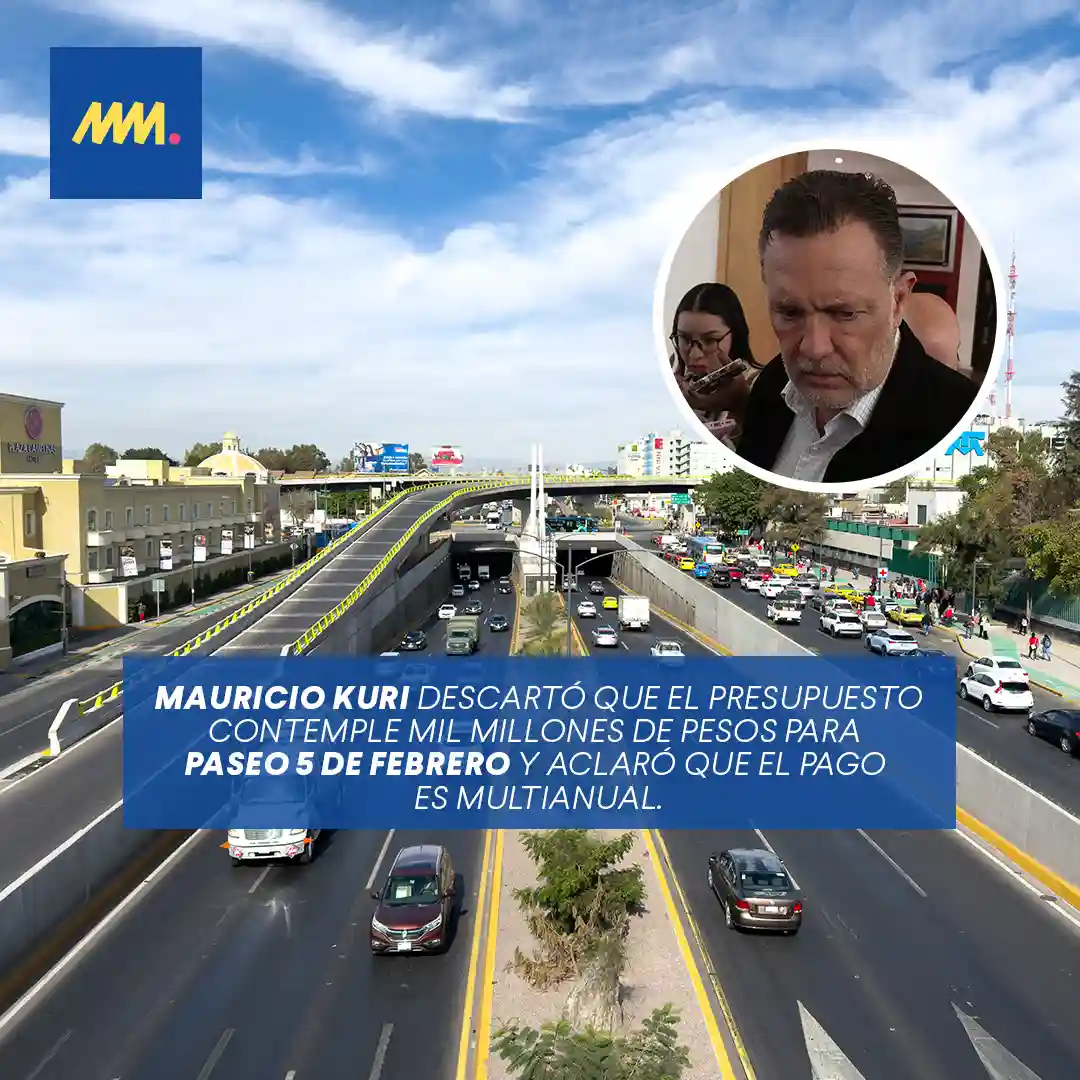 El gobernador de Querétaro, Mauricio Kuri González, rechazó que en el presupuesto de egresos se contemple la asignación de mil millones de pesos para la obra de Paseo 5 de Febrero y aclaró que los recursos considerados corresponden al esquema de pago multianual del proyecto.